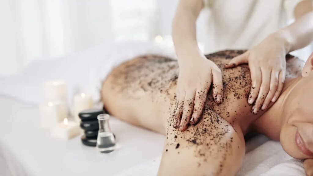 Peeling z masażem relaksacyjnym całego ciała który oczyszcza, regeneruje i głęboko odżywia skórę. Skutecznie ułatwia pozbycie się martwego naskórka i zanieczyszczeń. Masaż regeneruje ciało i wyciszą umysł. Skóra pozostaje zmysłowo pachnąca i aksamitna w dotyku.