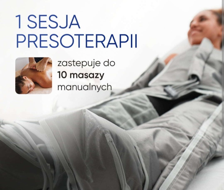 Presoterapia – drenaż limfatyczny polega on na wywieraniu kontrolowanego ucisku na ciało za pomocą specjalnych mankietów ze sprężonym powietrzem. Dzięki takiej stymulacji naczyń limfatycznych oraz krwionośnych poprawia się cyrkulacja płynów ustrojowych, co wpływa na przyspieszenie metabolizmu. Efekty drenażu mogą być zauważalne już po pierwszym zabiegu. Poprawia się wyglad i ujędrnienie skory, zauważalnie zmniejsza się obrzęk, niweluje się uczucie cieżkich nóg oraz poprawia kondycja organizmu po wysiłku fizycznym.